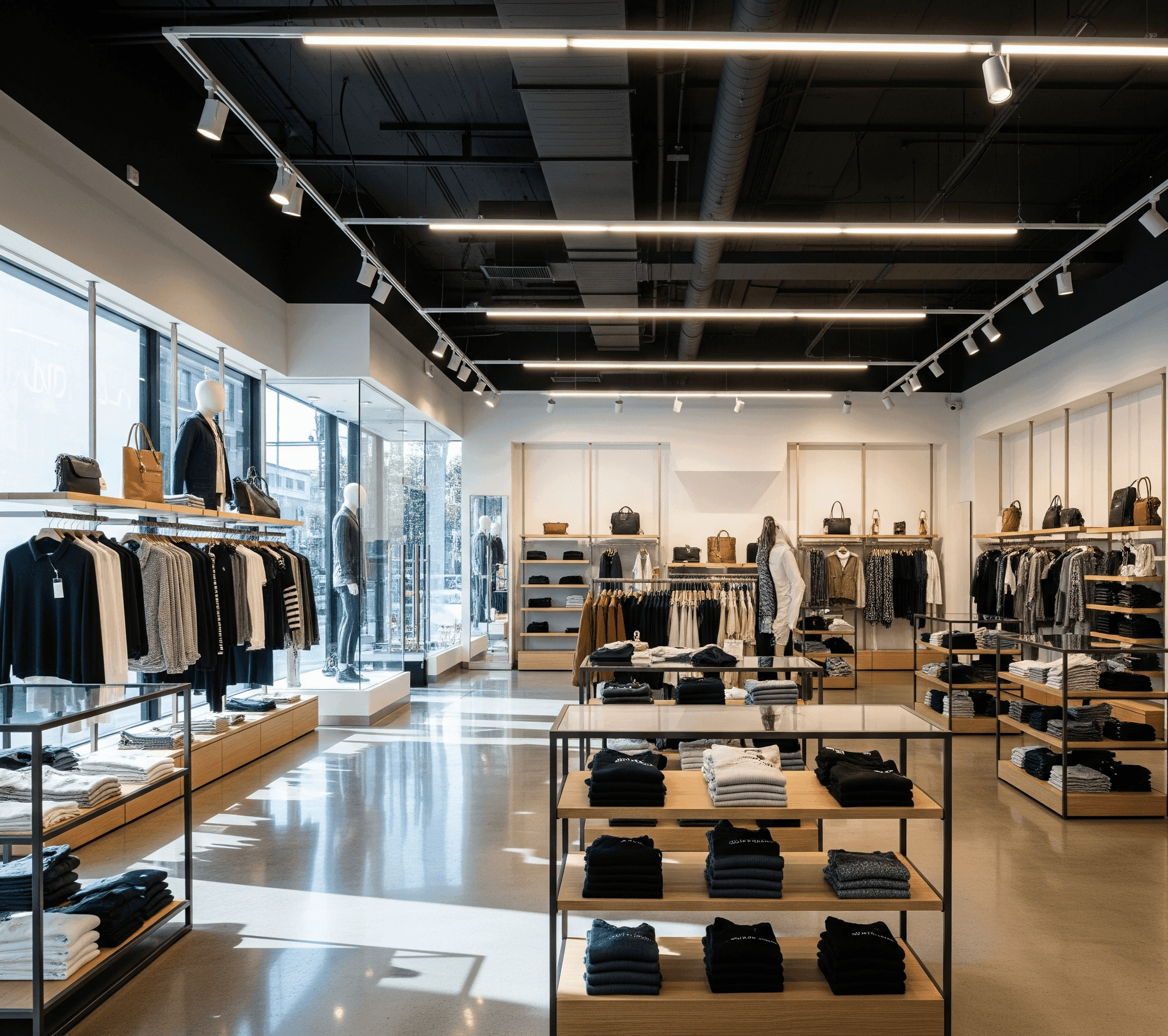Prestations adaptées aux boutiques, magasins, showrooms : vitrines, espaces clients, cabines, réserves et sanitaires.